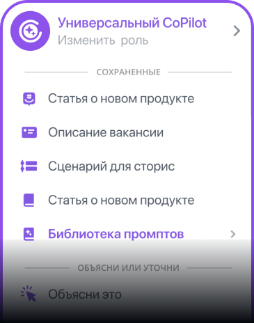 Новый CoPilot — мастер перевоплощений! Нужен креативный копирайтер, серьёзный юрист или душевный психолог? Просто скажите CoPilot, кем ему быть — он сразу вникнет в контекст, подберёт нужные слова и отправит точный ответ. Ваша личная команда экспертов, доступная в один клик. Просто попробуйте!